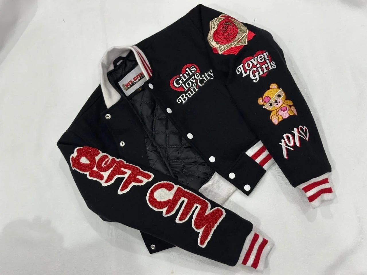 Shop Categories: All Hoodie Sets Jackets Apparel All | Hoodie Sets | Jackets | Apparel | Buff City Patch Beanie $25.00 Buff City Women’s Cropped BC Jacket (Gold Edition) $350.00 Buff City Signature BC Jacket (Gold Edition) $350.00 Buff City Lions Set $125.00 Buff City “What Up Doe” Windset $100.00 Buff City “Classic Set" $100.00 Buff City “Classic Black Crop Top” Varsity $150.00 Buff City “All White Buffies” Varsity Jacket $200.00 Buff City “Motor City All-Stars” Varsity Jacket $155.00 Buff City “What Up Doe” Varsity Set $200.00 Buff City “Detroit Legends” Varsity $200.00 Buff City “Classic Blue Crop Top” Varsity $150.00 Buff City “Classic Red Crop Top” Varsity $150.00 Buff City “Bad Boys” Satin Jacket $200.00 Buff City “Girls Love Buff City” Varsity $200.00 Buff City “Frost Pink” Cropped Bomber $350.00 Buff City “Signature BC” Leather Bomber $300.00 Buff City “Varsity OG” Jacket $200.00